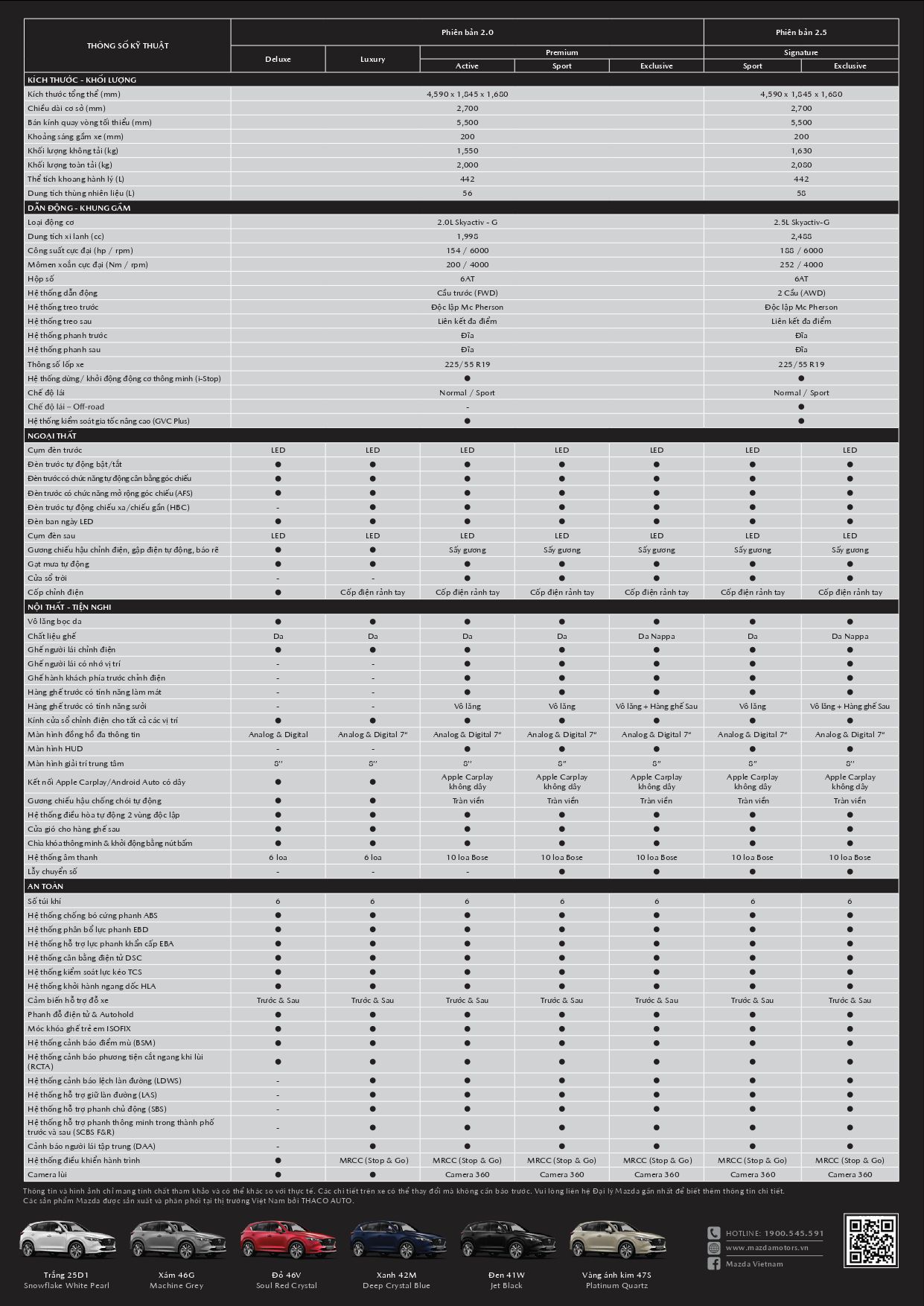 | Hộp số | Tự động 6 cấp 6G-skyactiv |